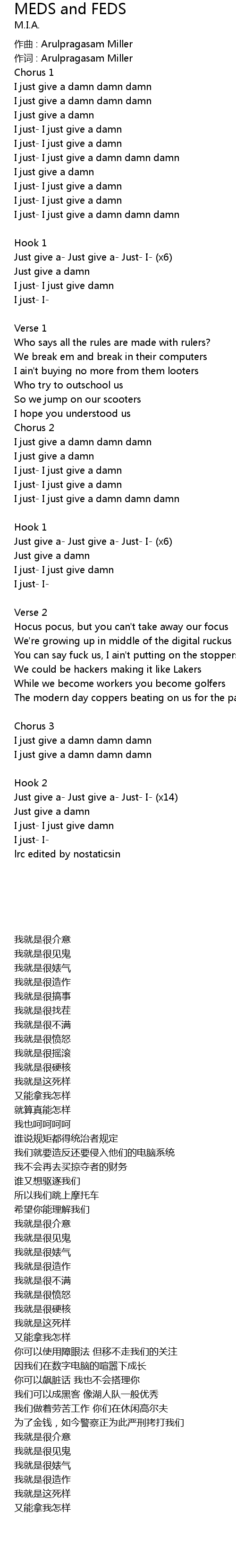 | [00:46.44] | I just give a damn damn damn |