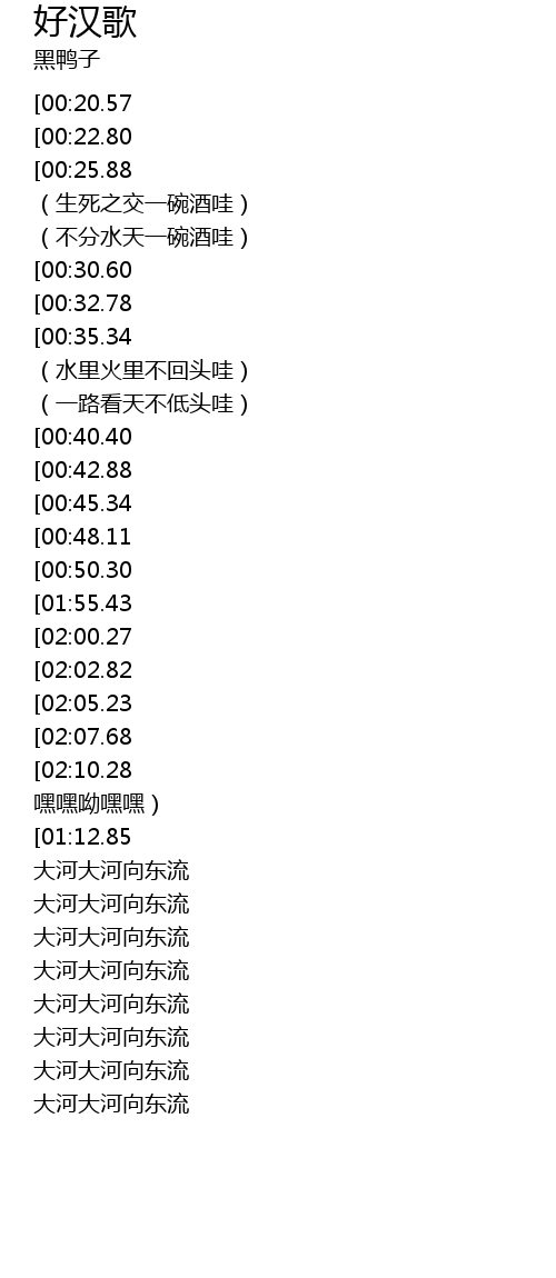 | [01:23.15][00:20.57] | 大河向东流哇 |