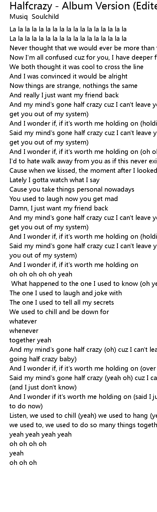 Said my mind's gone half crazy (yeah oh) cuz I can't leave you alone (and I just don't know) |