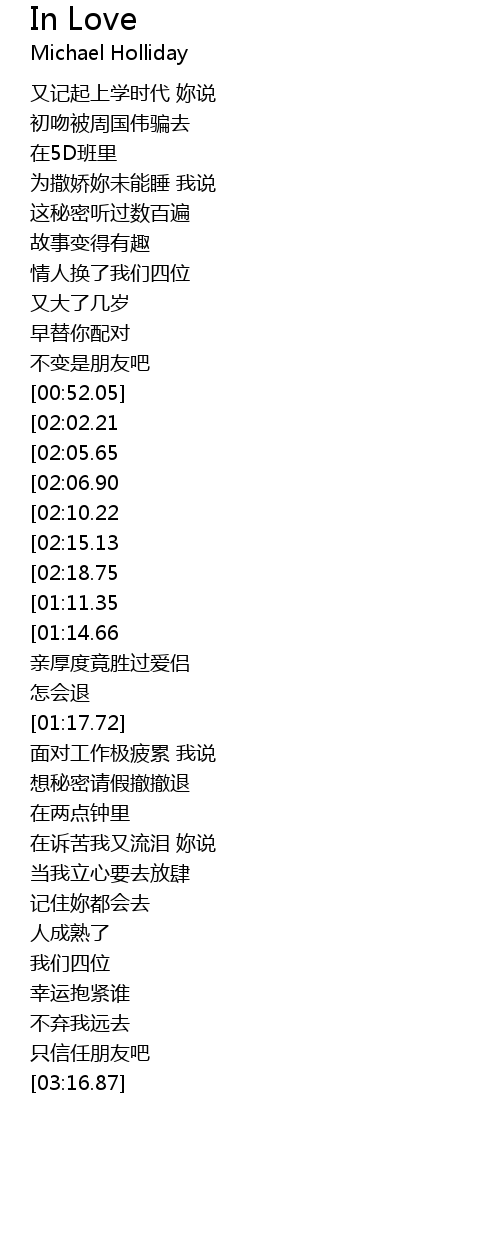 | [02:52.01][02:02.21][00:53.51] | 我们注定成密友 |