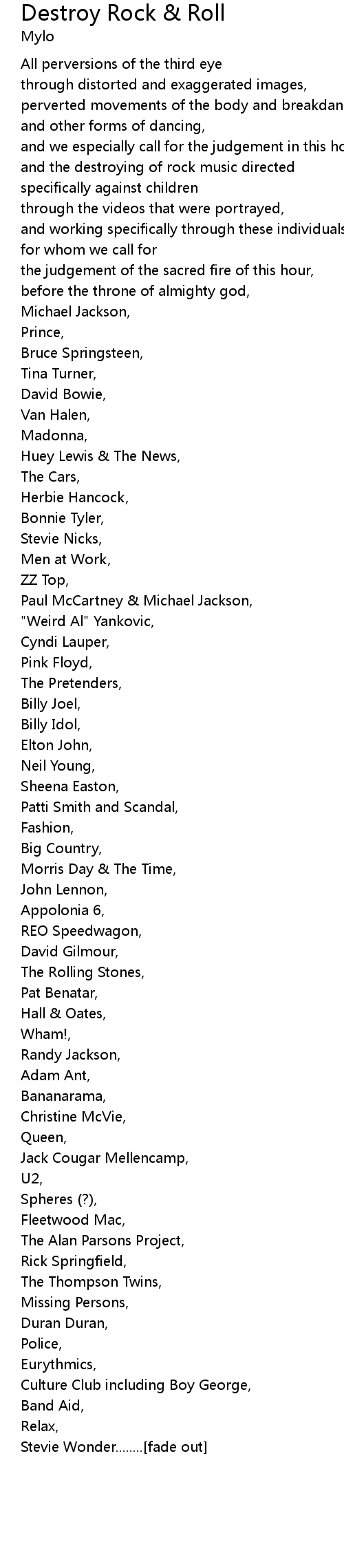 and the destroying of rock music directed |
