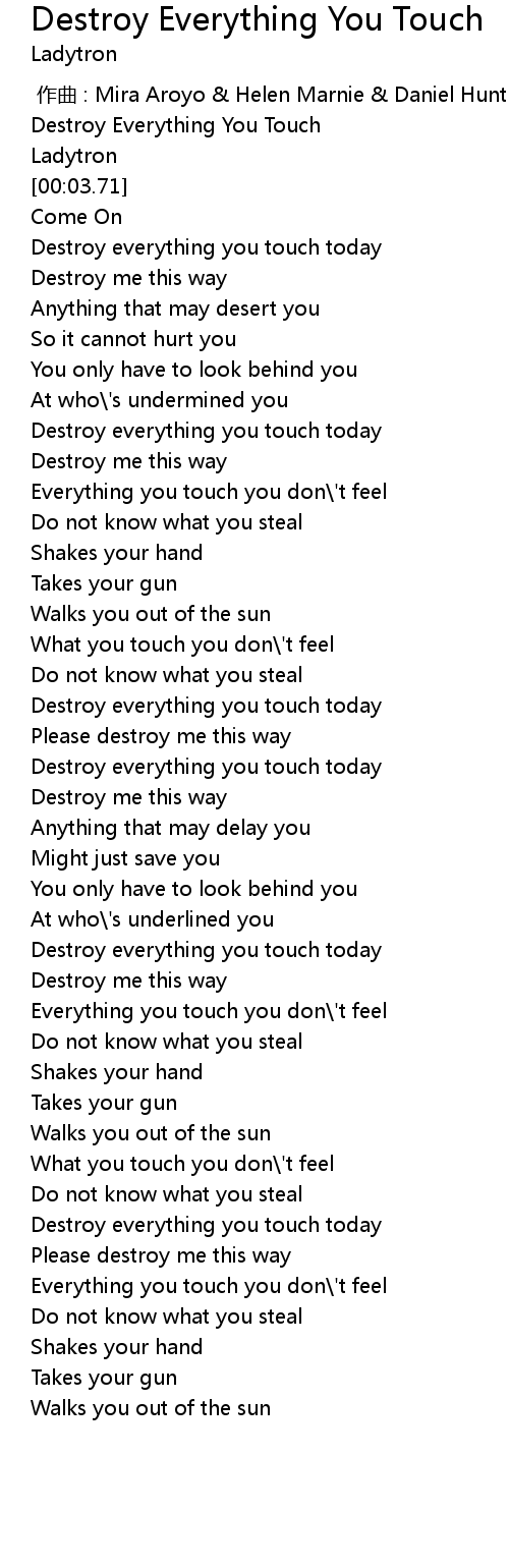 | [00:01.72] | Destroy Everything You Touch |