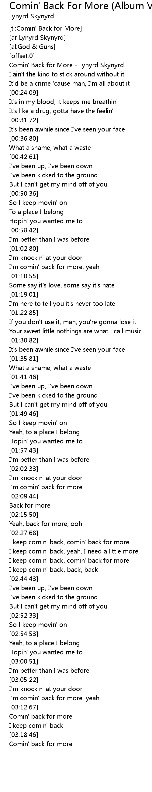 [ti:Comin' Back for More] |