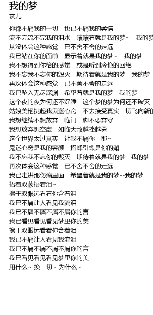 | 我不忘我不忘你的毁灭 期待着就是我的梦 我的梦 | |