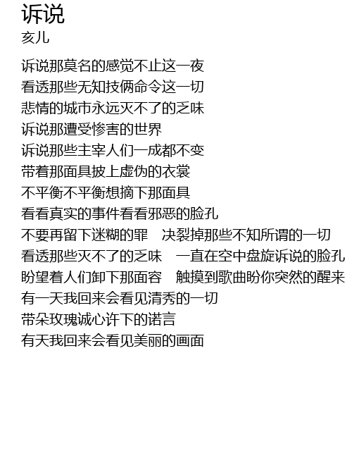 | 盼望着人们卸下那面容 触摸到歌曲盼你突然的醒来 | |