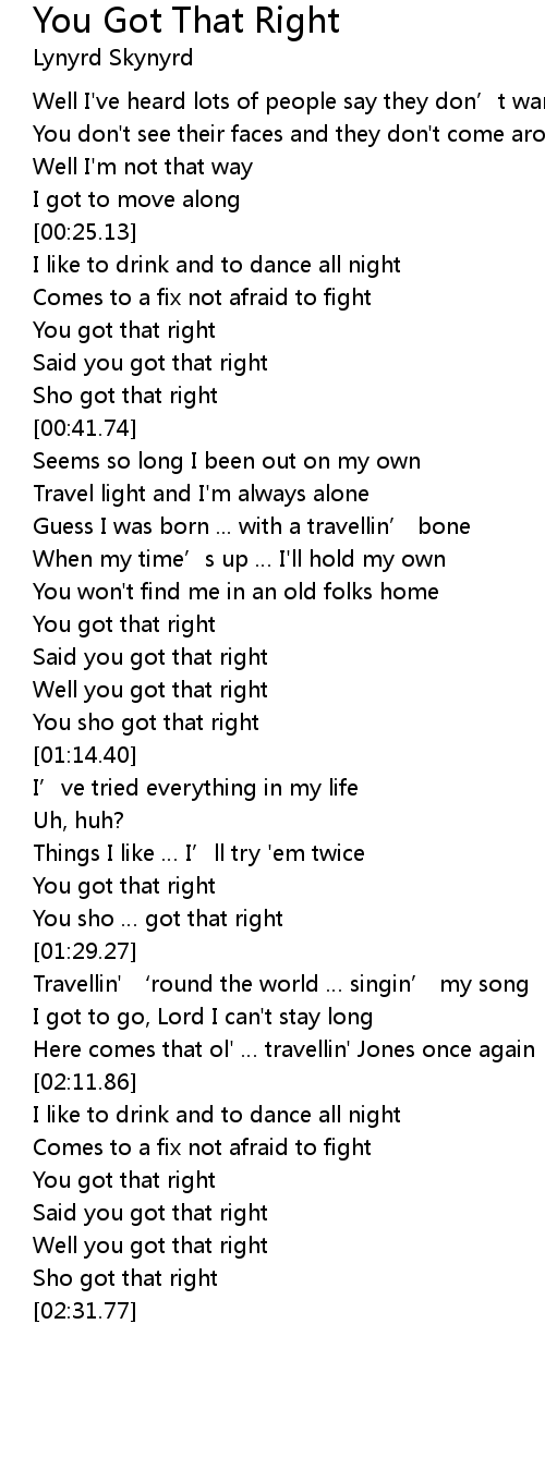 | [02:22.91] | Said you got that right |