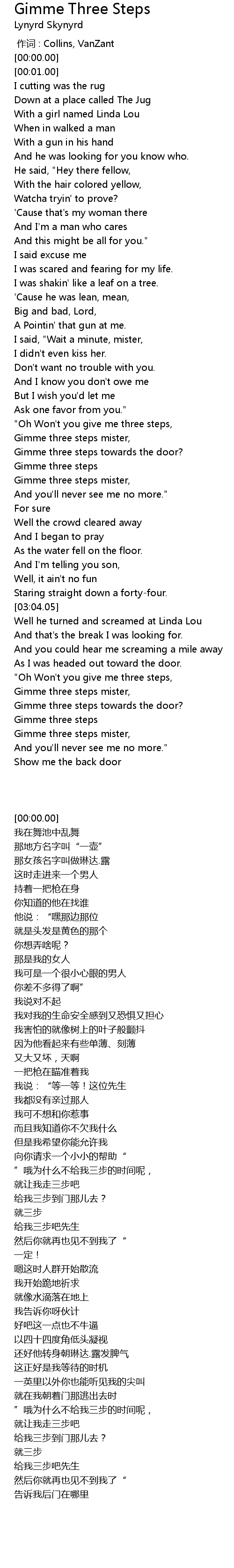 | [03:19.12] | "Oh Won't you give me three steps, |