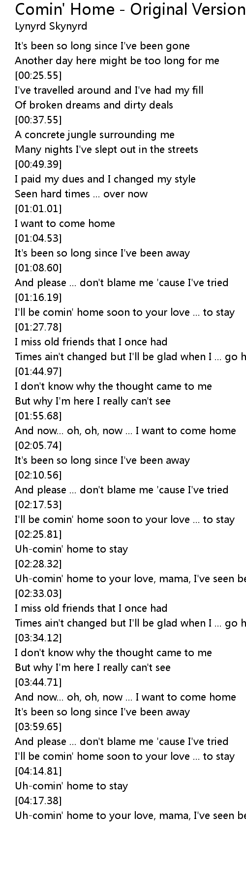 And now... oh, oh, now ... I want to come home |
