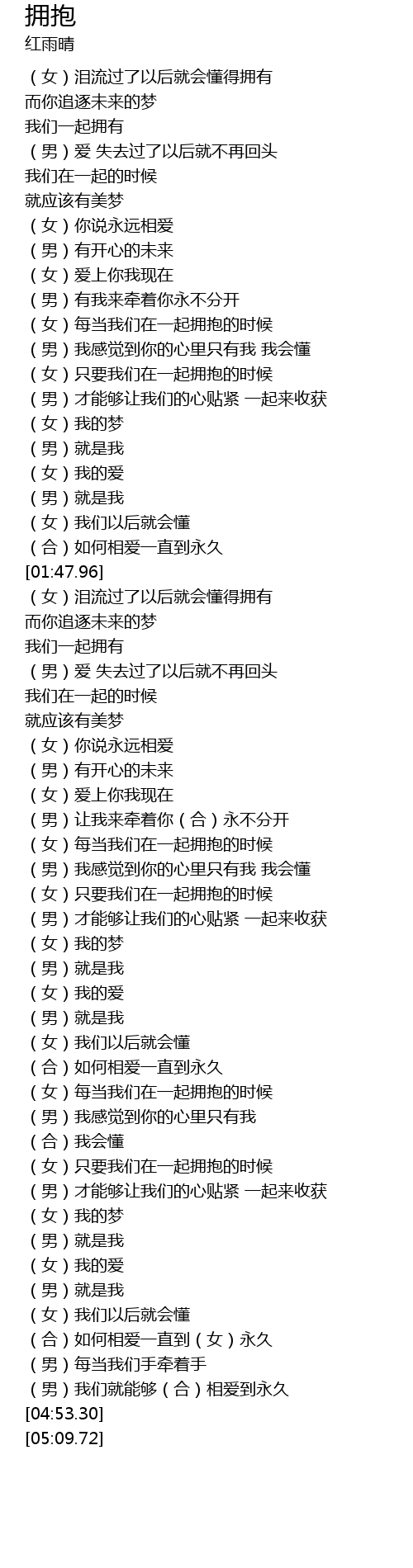 | [01:16.33] | (女)只要我们在一起拥抱的时候 |