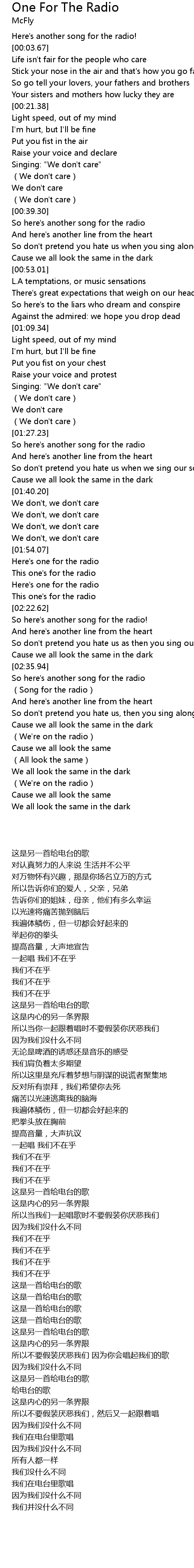 | [02:36.87] | So here's another song for the radio |