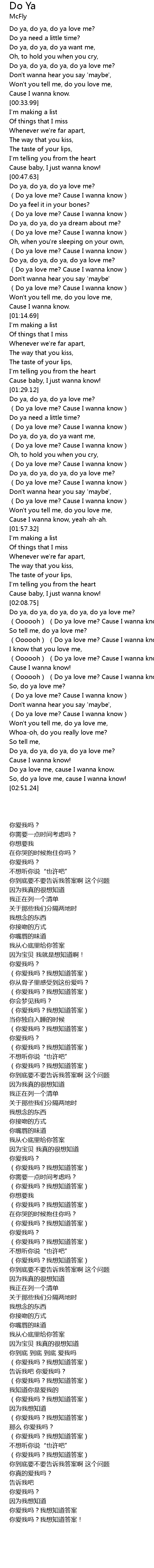 | [02:39.55] | Do ya, do ya, do ya, do ya love me? |