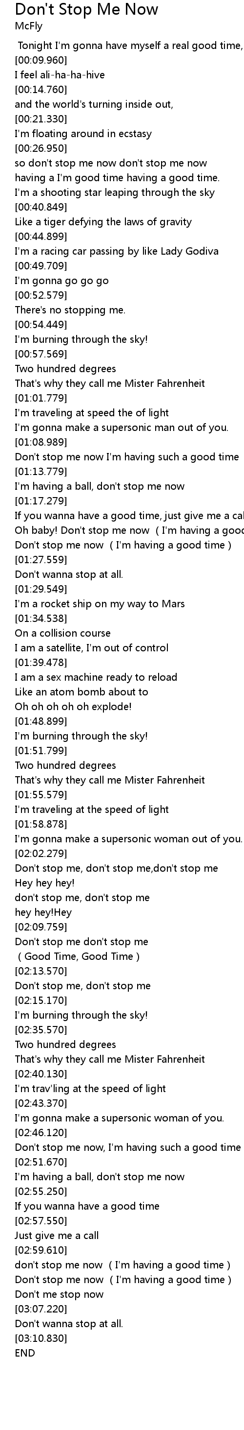 | [03:02.670] | Don' t stop me now I' m having a good time |