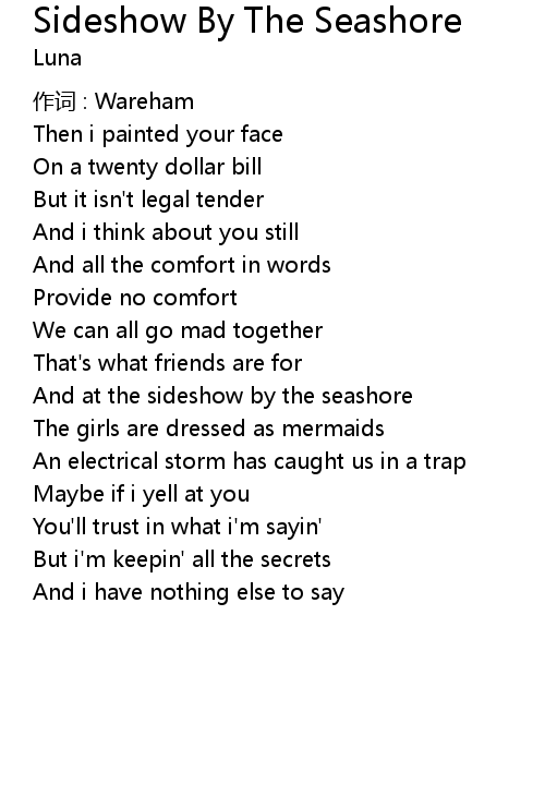 | And at the sideshow by the seashore | |