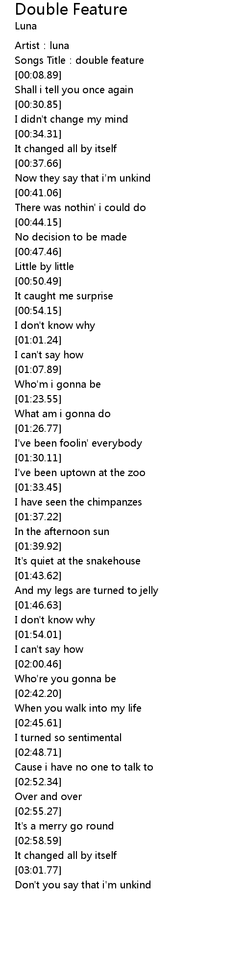 | [00:05.30] | Songs Title:double feature |