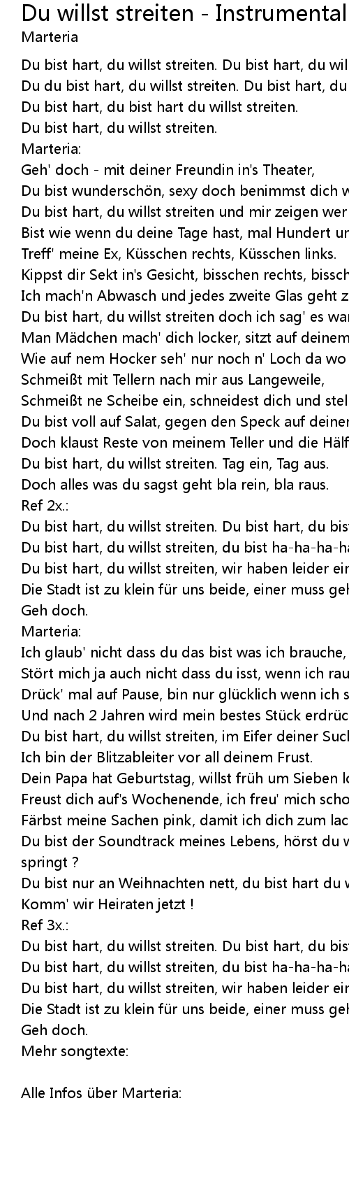 | Song | Du willst streiten - Instrumental |
