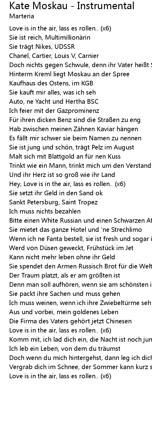 | Hey, Love is in the air, lass es rollen.. (x6) | |