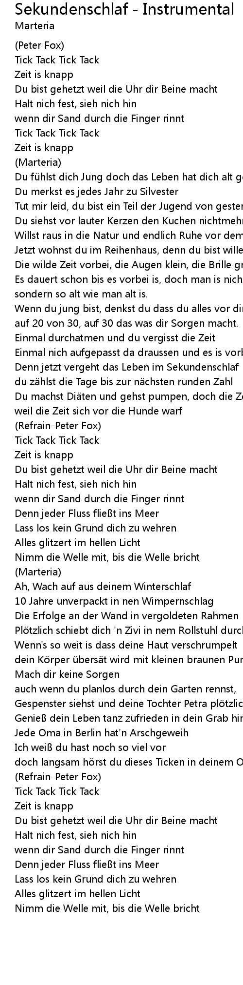| Denn jetzt vergeht das Leben im Sekundenschlaf | |