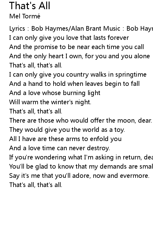 | Song | That's All |
