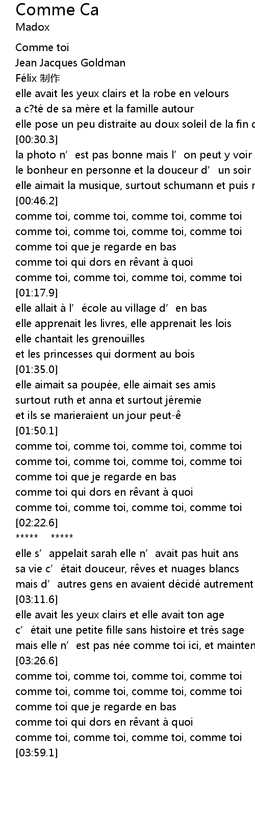 | [03:53.1] | comme toi, comme toi, comme toi, comme toi |