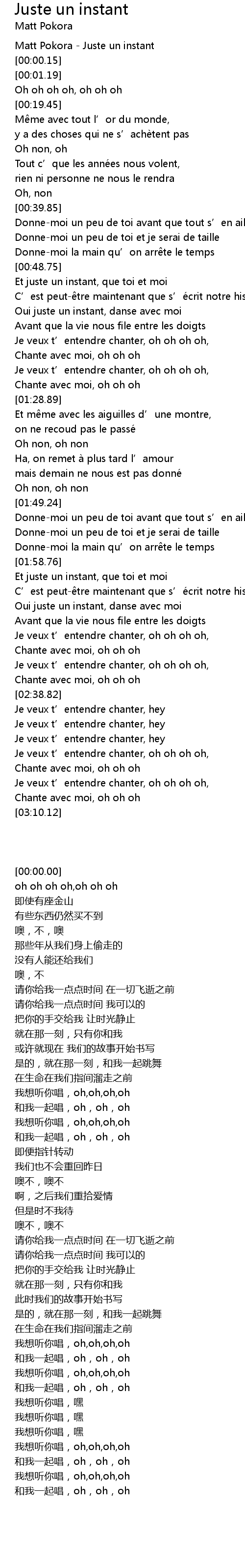 | [00:00.00] | Matt Pokora - Juste un instant |