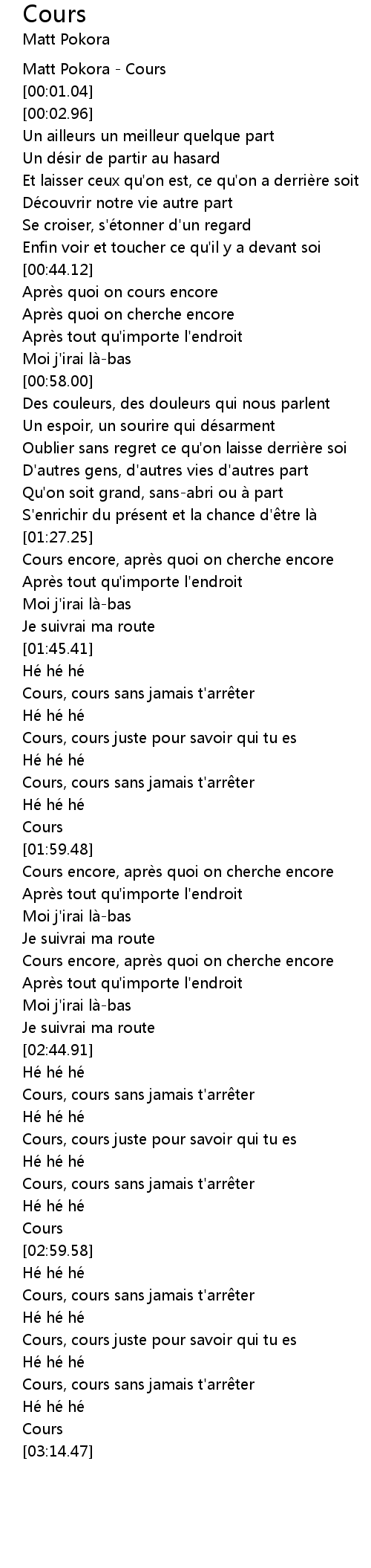 | [02:30.29] | Cours encore, aprè s quoi on cherche encore |