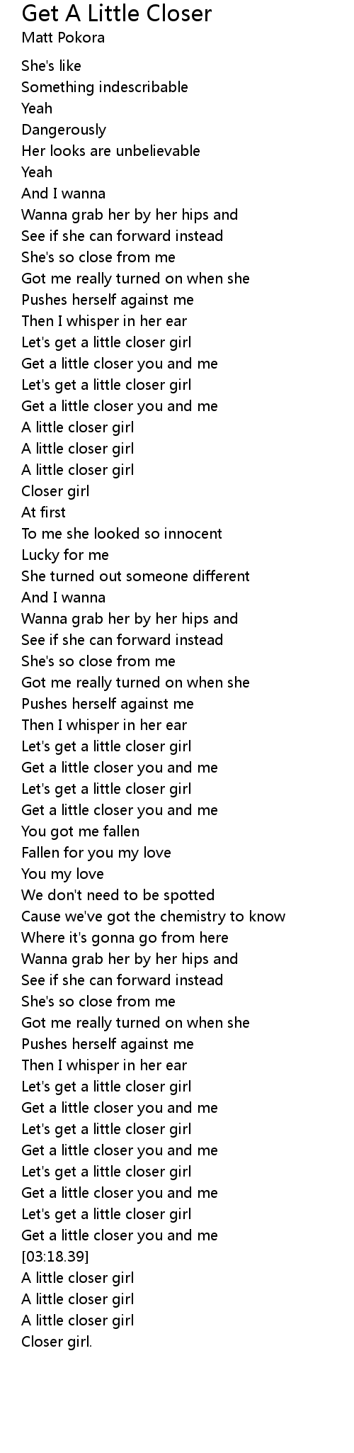 Let's get a little closer girl |