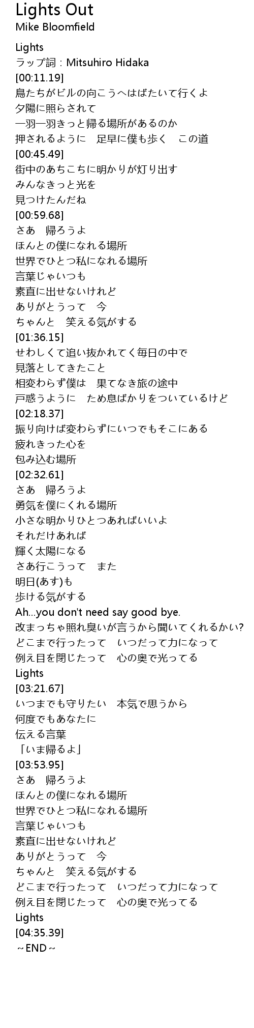 | [00:03.32] | ラップ詞:Mitsuhiro Hidaka |