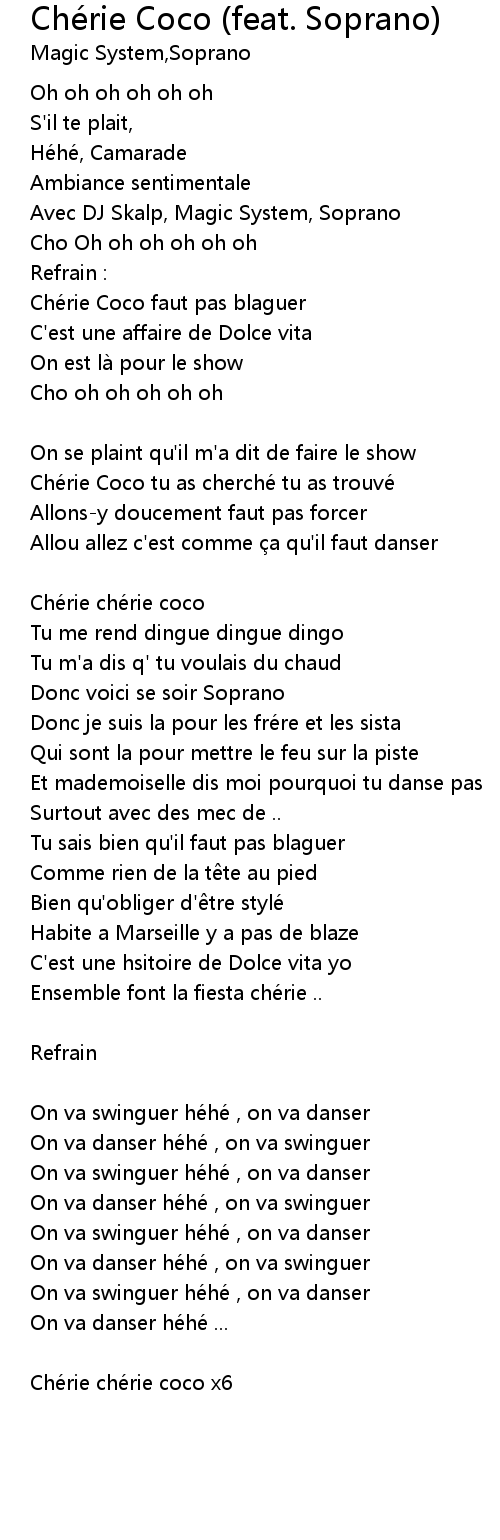 | Song | Chérie Coco (feat. Soprano) |