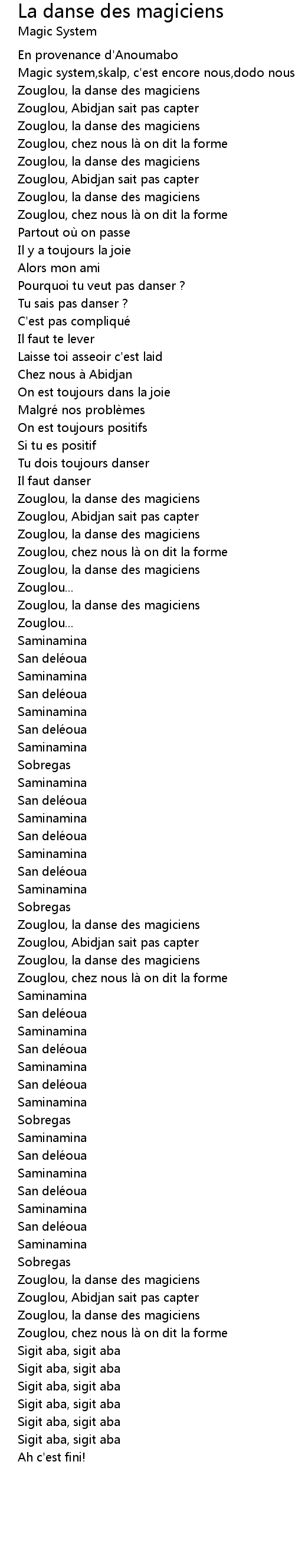 | Magic system,skalp, c'est encore nous,dodo nous, dozou) | |