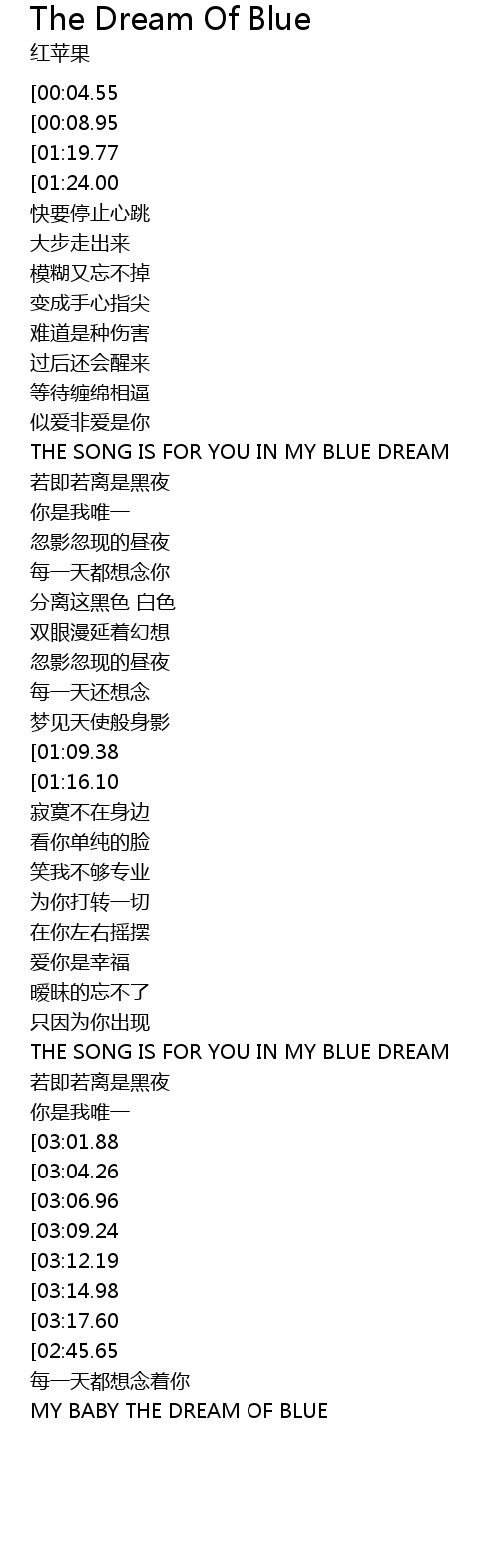 | [03:58.38][00:08.95] | 红苹果 |