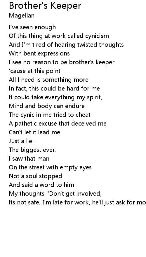 I see no reason to be brother's keeper |
