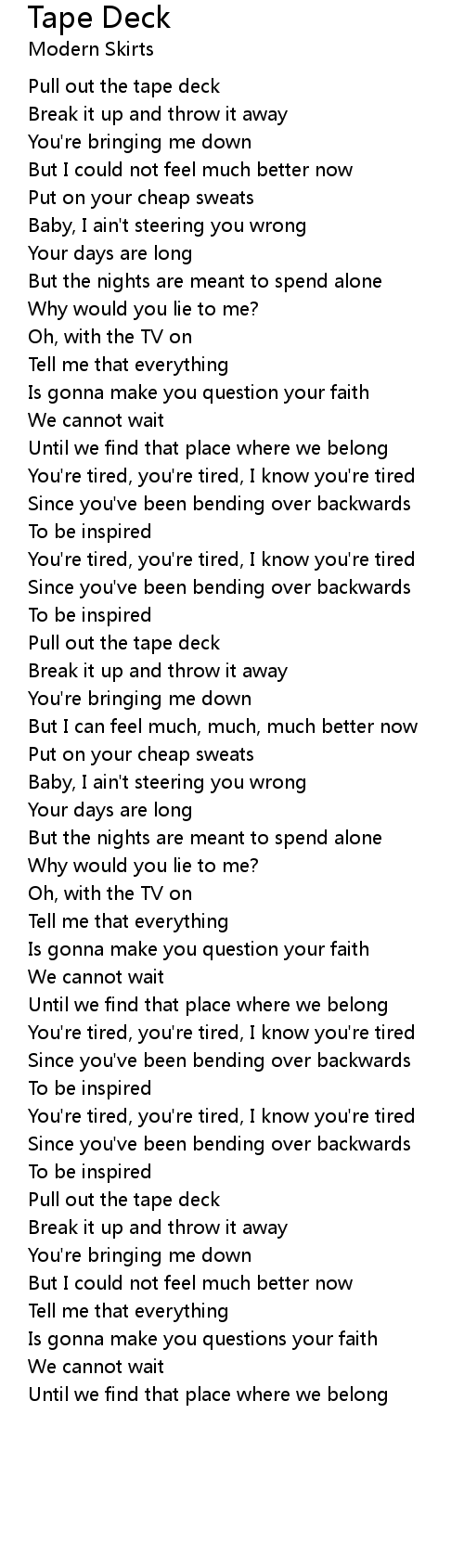 You're tired, you're tired, I know you're tired |
