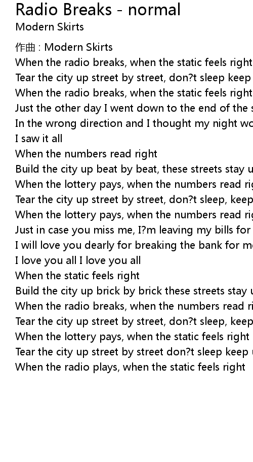 | When the radio breaks, when the numbers read right | |
