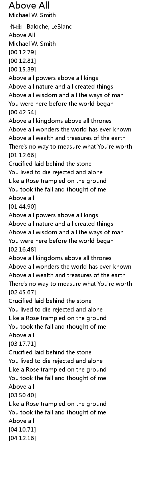 | [02:03.37] | Above all wisdom and all the ways of man |