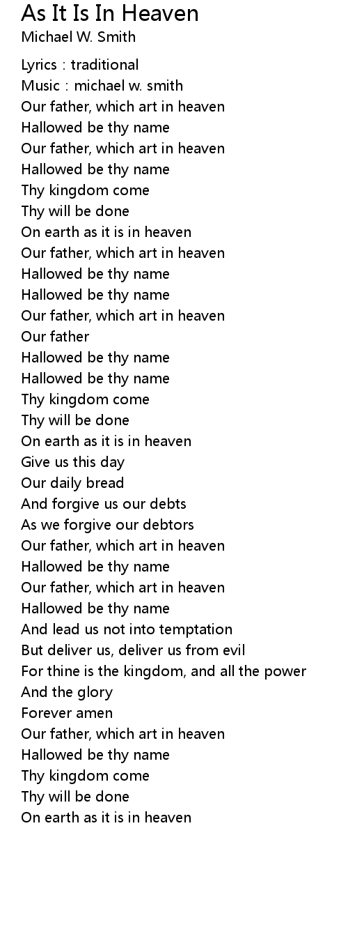 | On earth as it is in heaven |