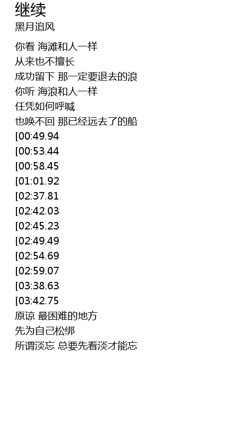| [03:30.36][02:54.69][01:28.16] | 勇敢的人请你继续勇敢 |