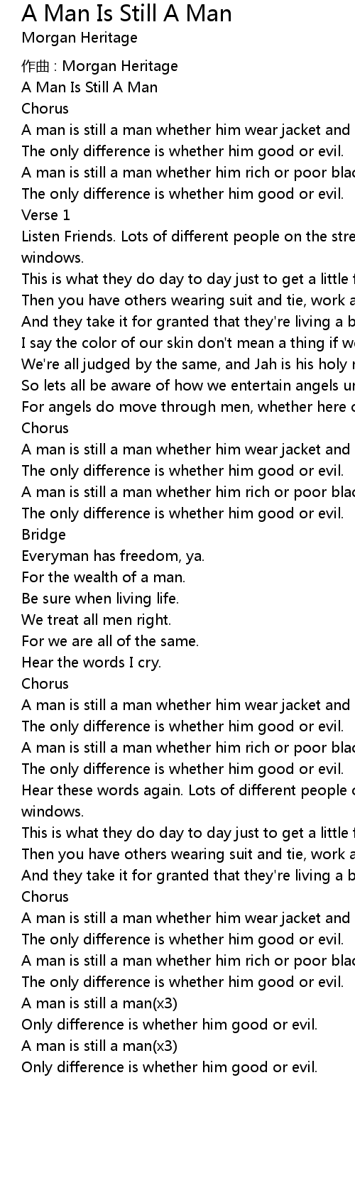 | A man is still a man whether him rich or poor black or white for sure. | |