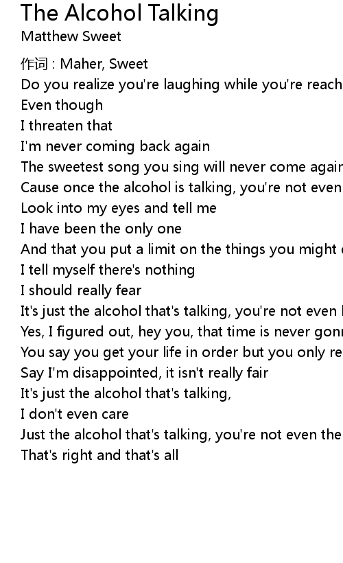 | Cause once the alcohol is talking, you're not even here | |