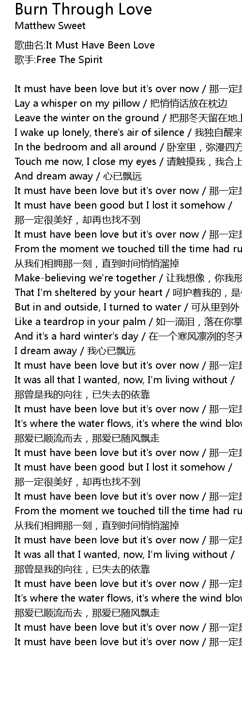 | It must have been love but it' s over now na yi ding shi ai, ke ai yi bu zai |