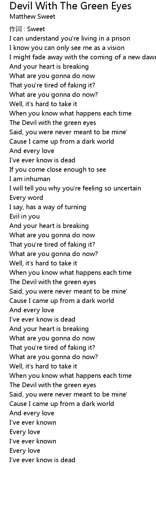 | Song | Devil With The Green Eyes |