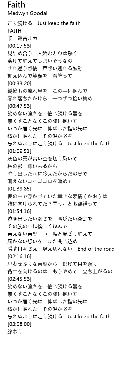 | [03:02.93] | 忘れぬように走り続ける Just keep the faith |