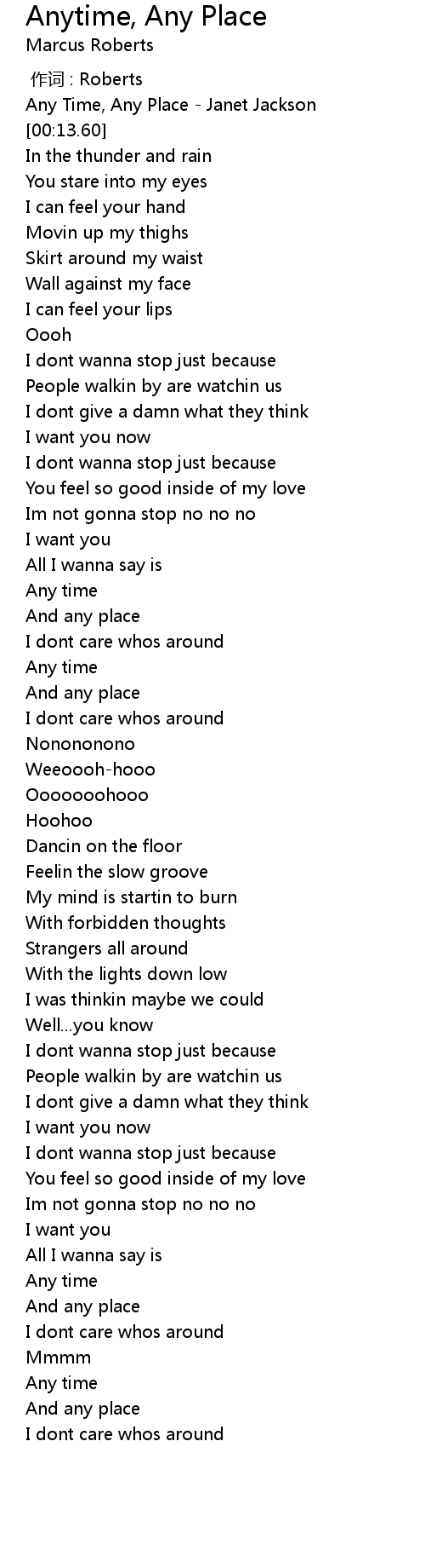 | [00:03.96] | Any Time, Any Place Janet Jackson |