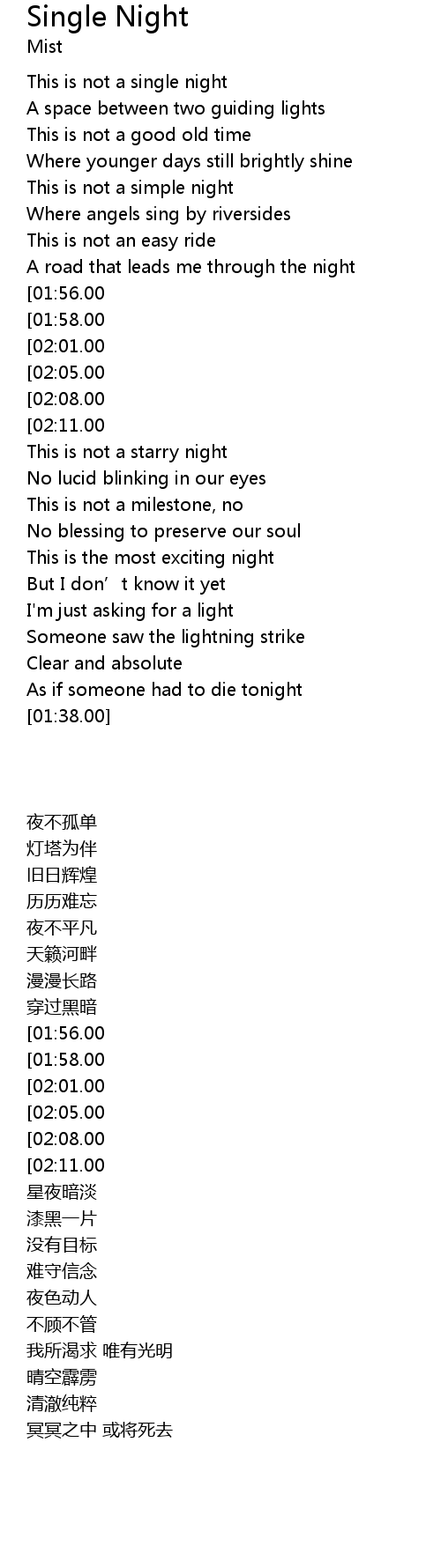 | [00:01.00] | This is not a single night |