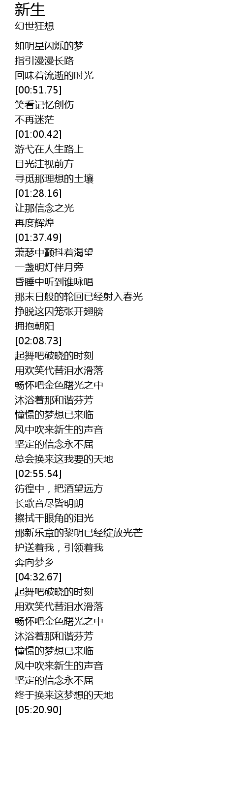 | [05:12.08] | 终于换来这梦想的天地 |