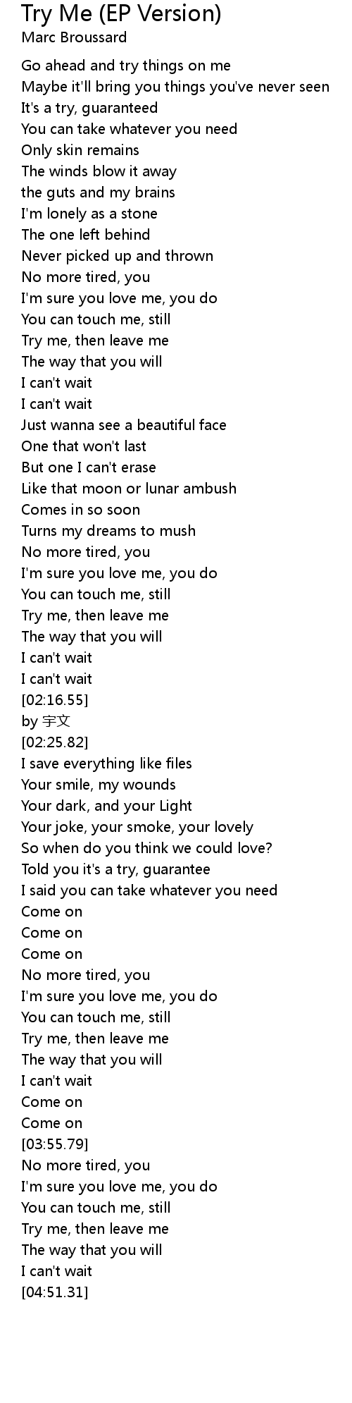 | [04:41.60] | Try me, then leave me |