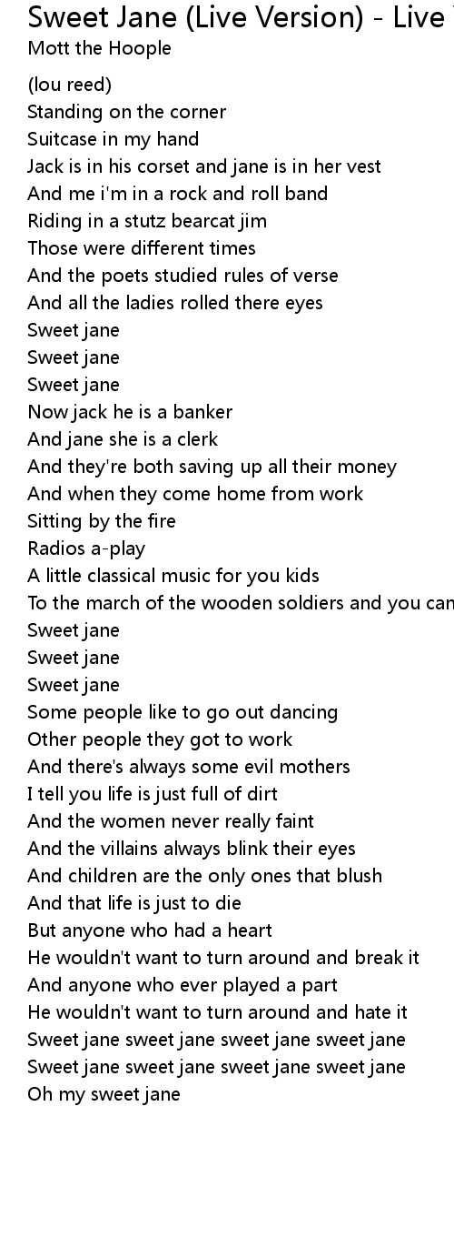 Sweet jane sweet jane sweet jane sweet jane |