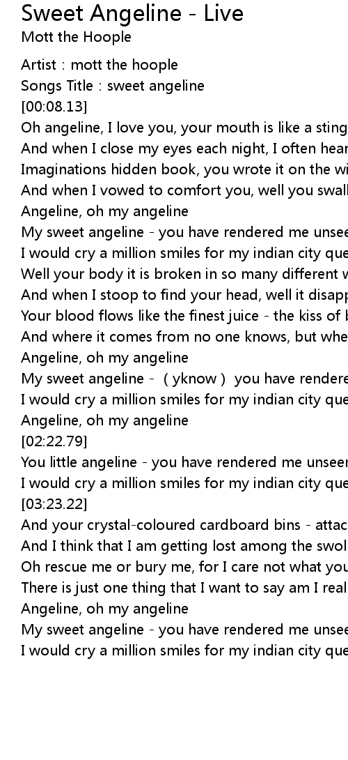 | [00:18.00] | Oh angeline, I love you, your mouth is like a sting |