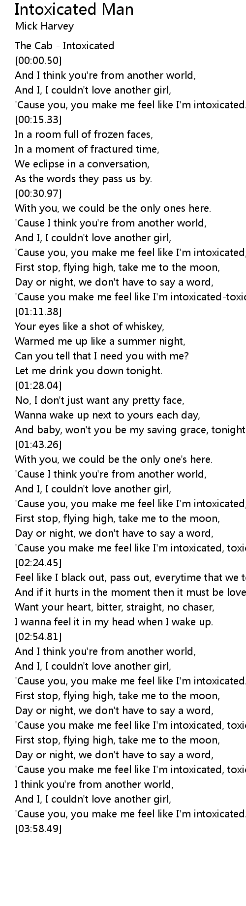 [03:34.34] 'Cause you make me feel like I'm intoxicated, toxicated.