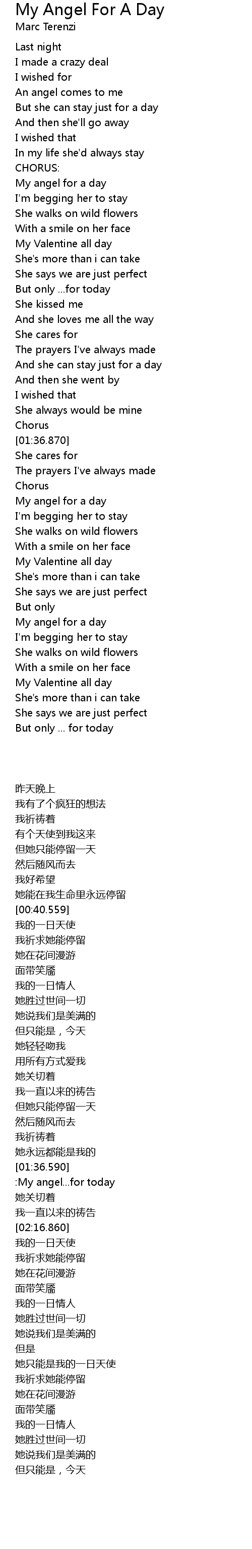 | [02:17.800] | My angel for a day |