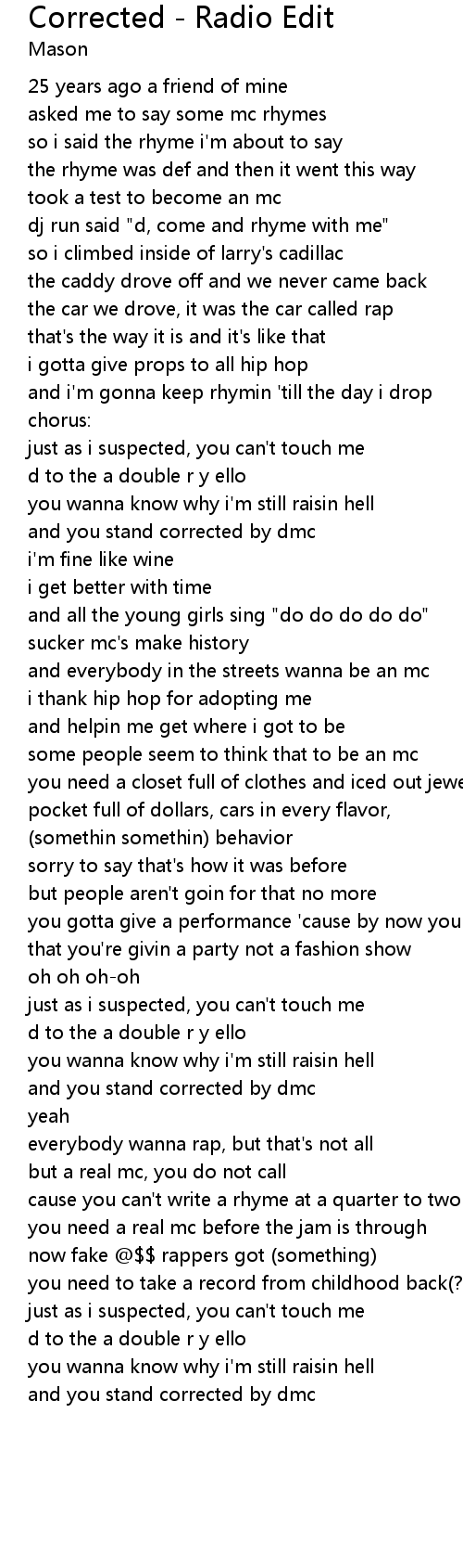 | and you stand corrected by dmc |